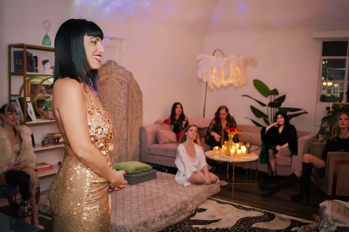 Drawing on psychology, mythology, and performance art, Sophia curates experiences that blend power dynamics with emotional intelligence. From Joseph Campbell to contemporary relationship thinkers, the Temple integrates education and embodiment.
